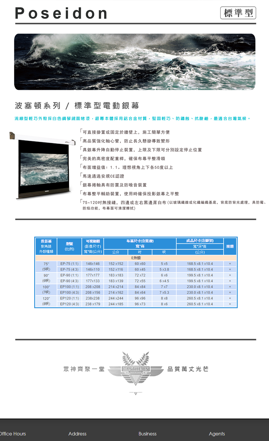Unico | 波塞頓系列標準電動投影幕|九旗影音科技有限公司