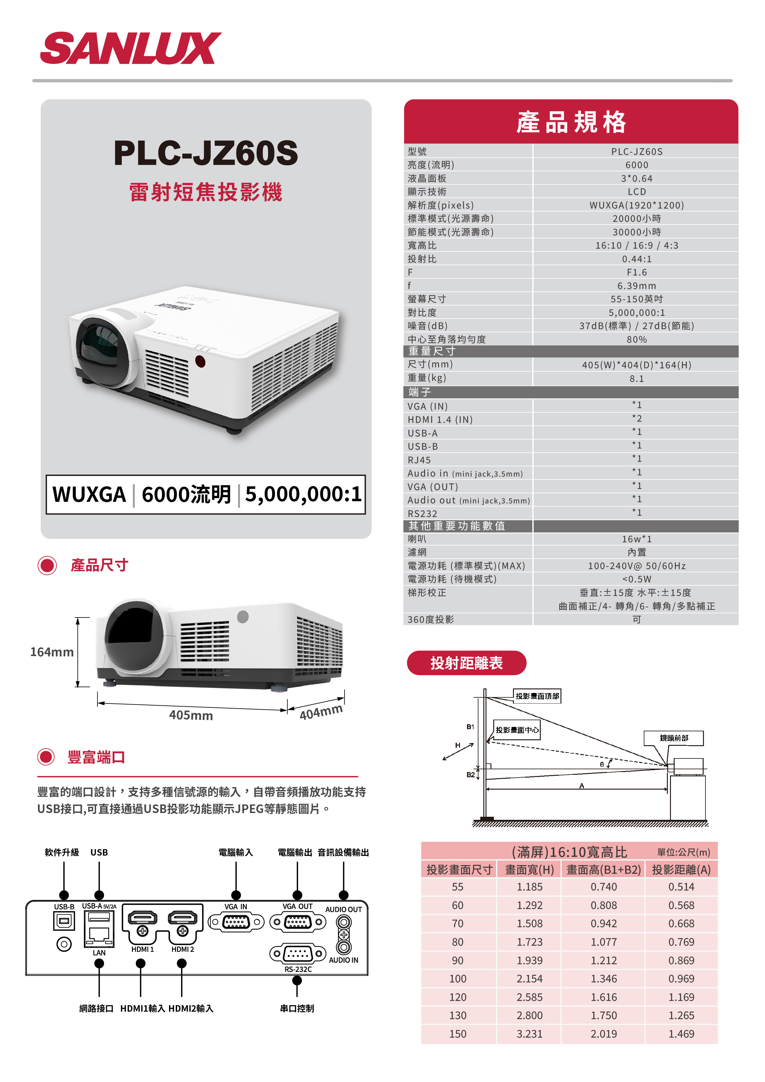 SANLUX | JZ60S | 6000流明 | 5,000,000:1|九旗影音科技有限公司